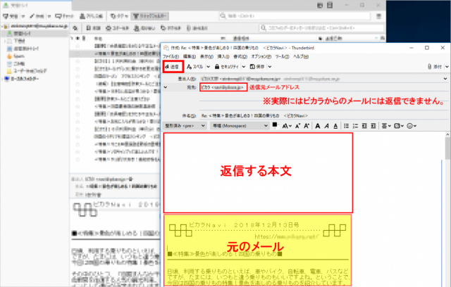 表示される返信画面には送信元のアドレスが