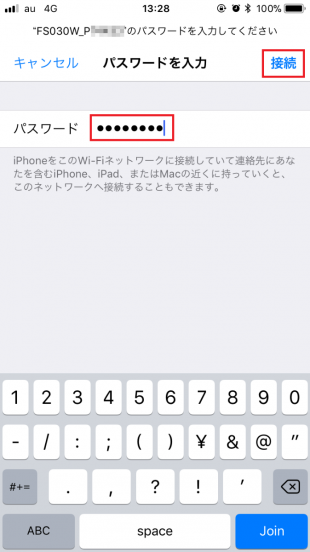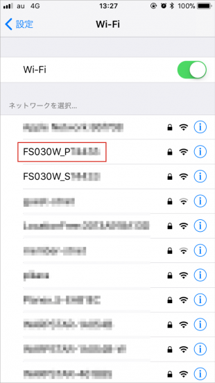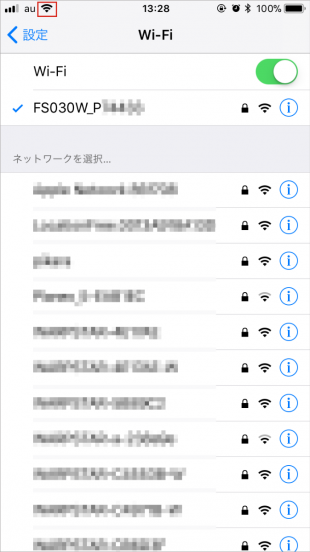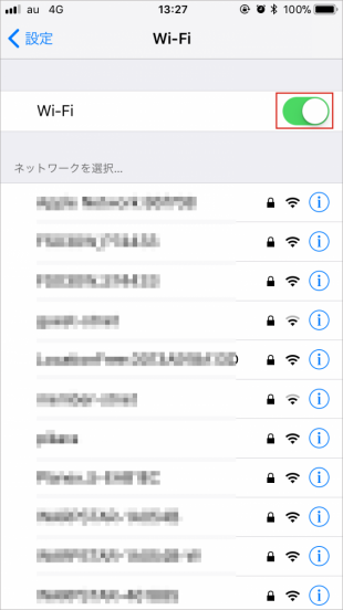 赤枠の部分をタップし、【Wi-Fi】をオンにします。