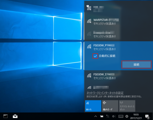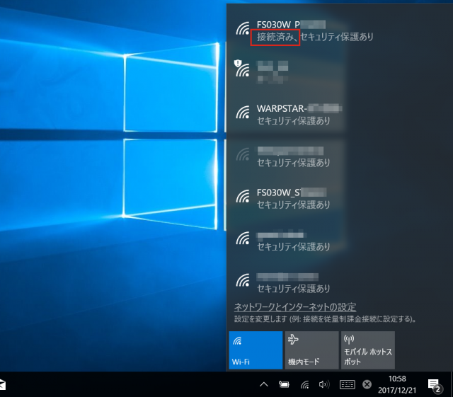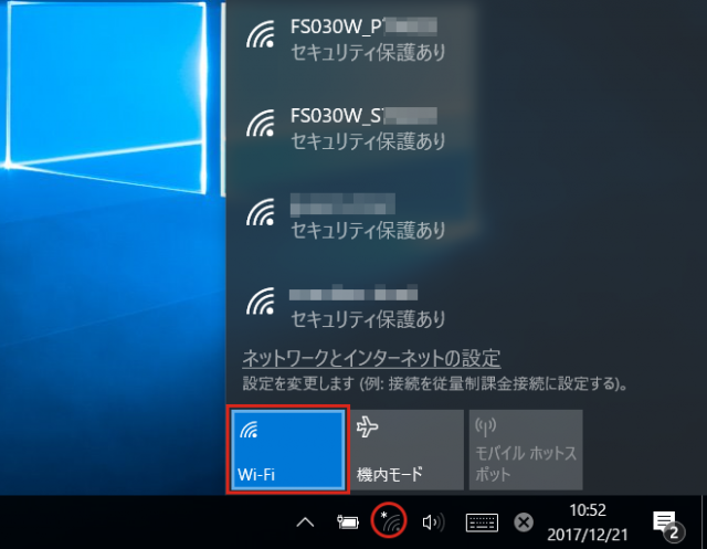 これがパソコンのWi-Fi機能を有効にした状態です。