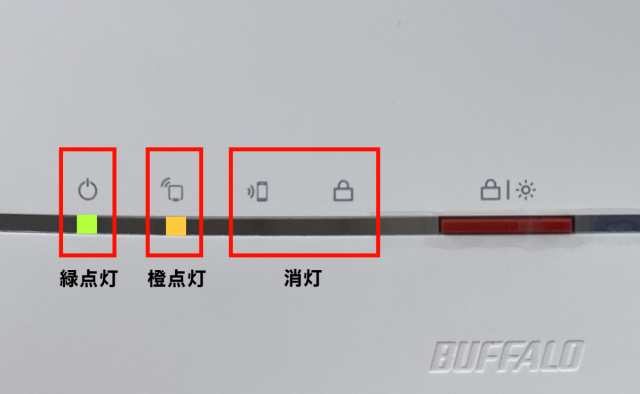 約1分後、前面ランプが以下の状態になっていることを確認します。