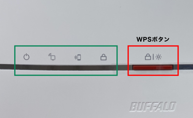 一番上のPOWERランプが緑点滅になるまで(約10秒)押して、WPS接続を開始します。
