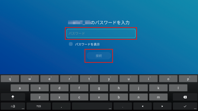 次の画面で、【パスワード】入力欄に、