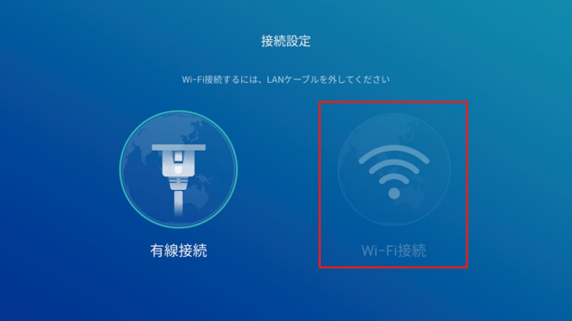 ※Wi-Fi接続を行うには、LANケーブルを外します。