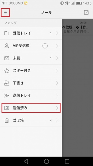 【送信済み】をタップします。