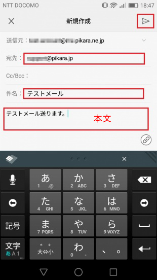 メールの新規作成画面が表示されますので、