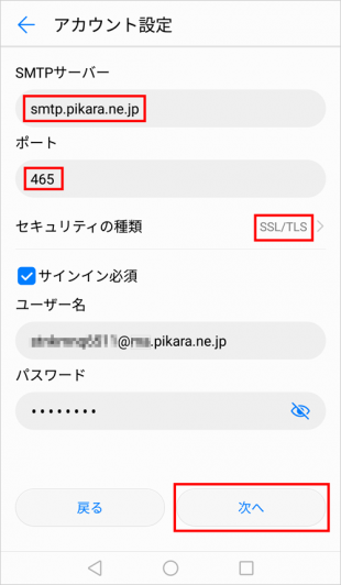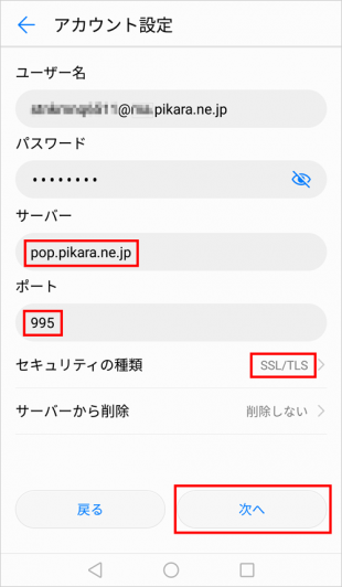 pop.xx.pikara.ne.jp のようになっている場合、pop.pikara.ne.jp に修正