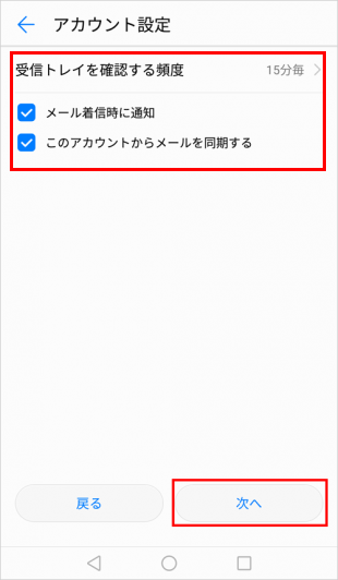 通知の必要がない場合チェックを外します。このアカウントからメールを同期する