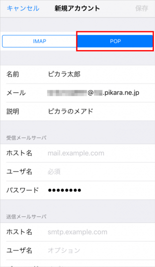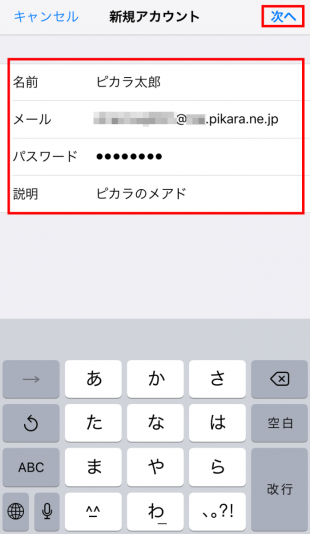 | 説明 | 任意の名前(例:pikaraなど) ※何も入力しない場合は、「メール」の@マークより右側が自動的に入力されます。 |