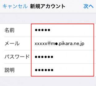 | 説明 | 任意の名前(例:pikaraなど) ※何も入力しない場合は、「メール」の@マークより右側が自動的に入力されます。 |