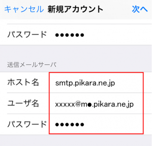 | ホスト名 | smtp.pikara.ne.jp |