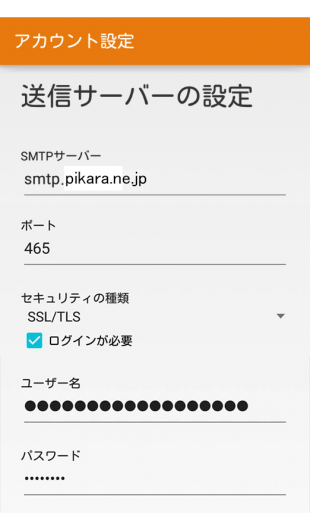 | SMTPサーバー | smtp.pikara.ne.jp |