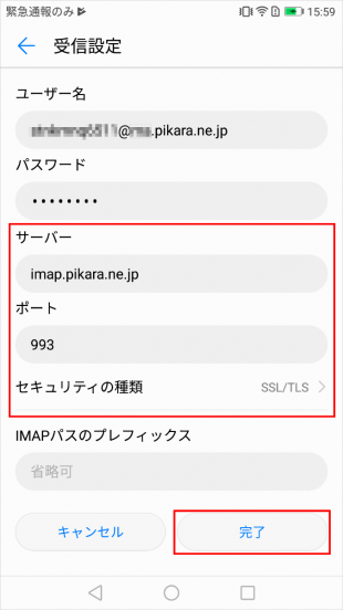 imap.pikara.ne.jp ※半角入力ポート