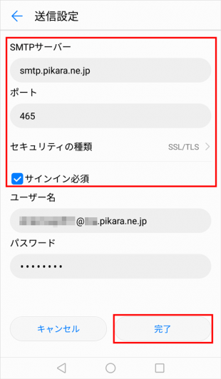 smtp.pikara.ne.jp ※半角入力ポート