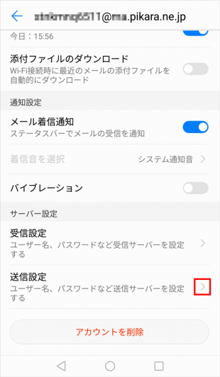 続いて、送信設定の項目で【>】をタップします。