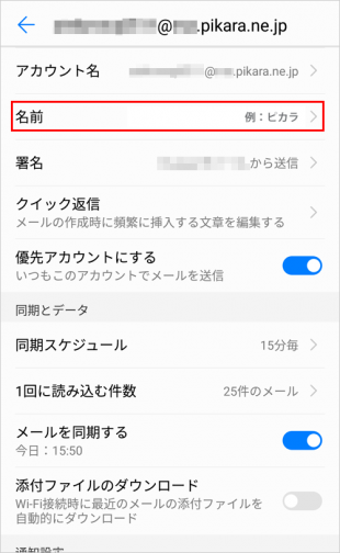 名前の項目をタップし、書き換え後に