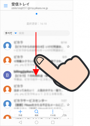 メールを確認したい場合、画面を上から下に