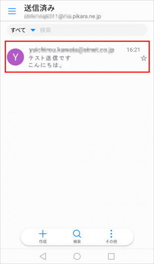 送信済みメールは以下のように表示されます。
