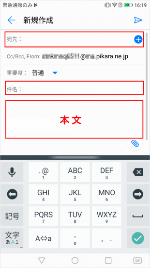 メールの新規作成画面が表示されますので、