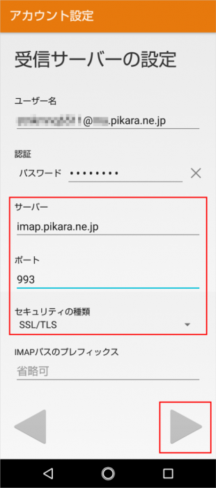 imap.xx.pikara.ne.jp のようになっている場合、imap.pikara.ne.jp に修正します。