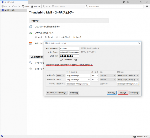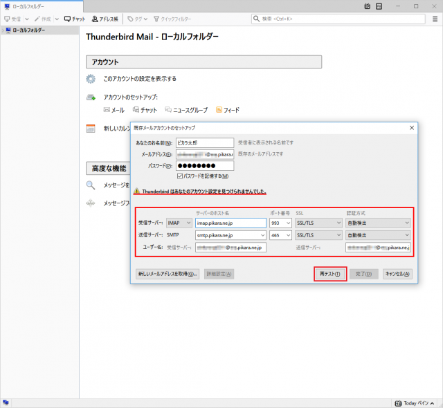 ※「Thunderbirdはあなたのアカウント設定を見つけられませんでした。」