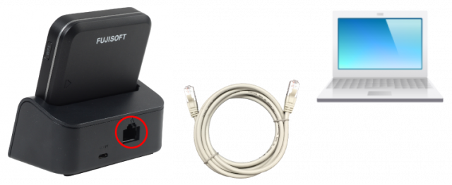 専用クレードルとパソコンを、 LANケーブルで接続します。